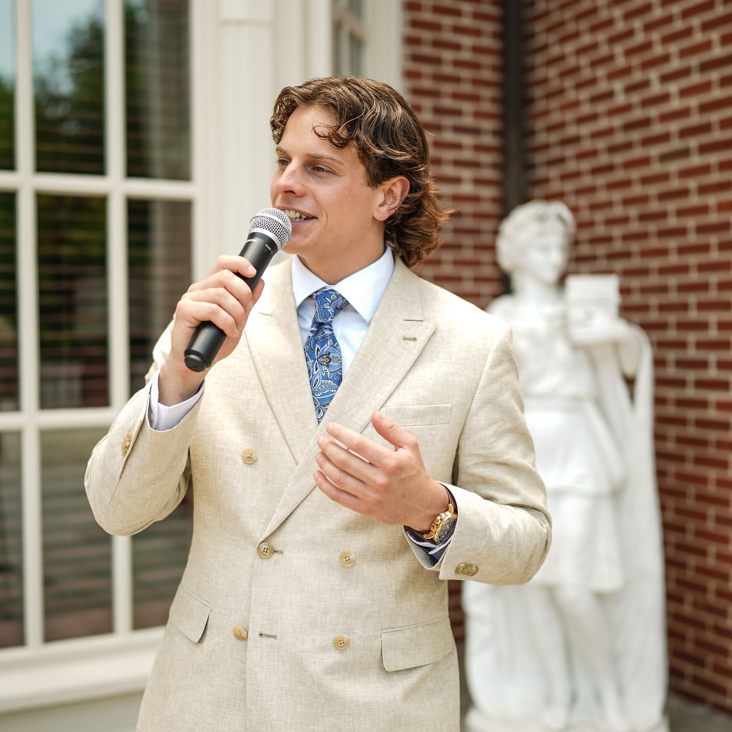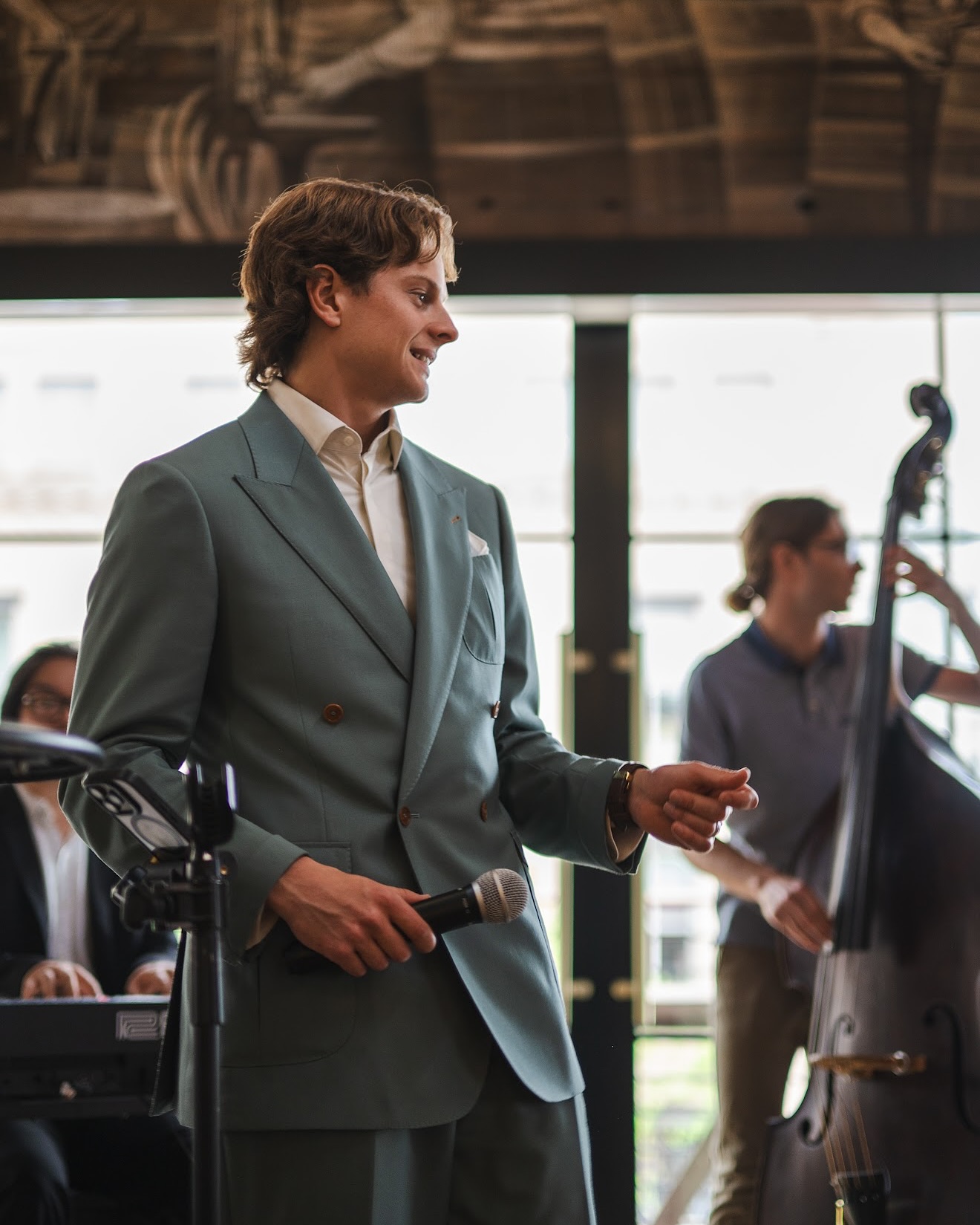 With its cobblestone charm and historic soul, Old Town Alexandria became Dan’s first stage. In late 2023, armed with a portable PA and Sinatra standards, he began performing for passersby along King Street and the waterfront. The blend of vintage jazz and open-air setting stopped locals in their tracks and often their scrolls, as clips of his performances quickly gained traction online. These humble sidewalk shows laid the foundation for his rapidly growing fanbase and viral presence.